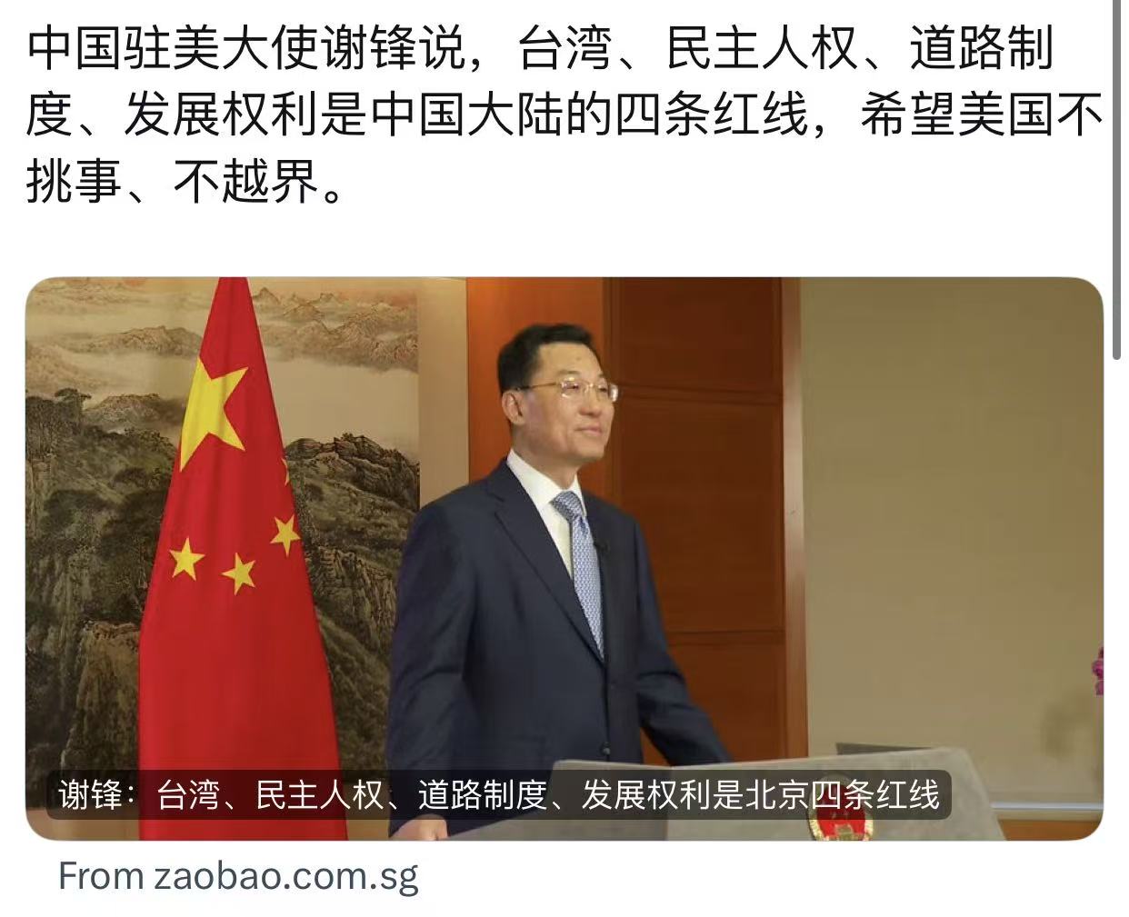 中国元首的代表正告美国!不可踏的四条红线